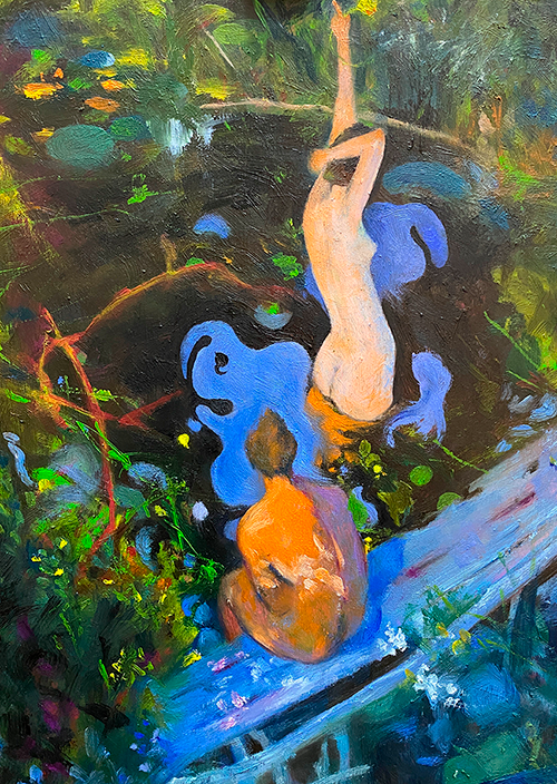 'Two on a bridge' - After Igor Krapar - Oil on wood